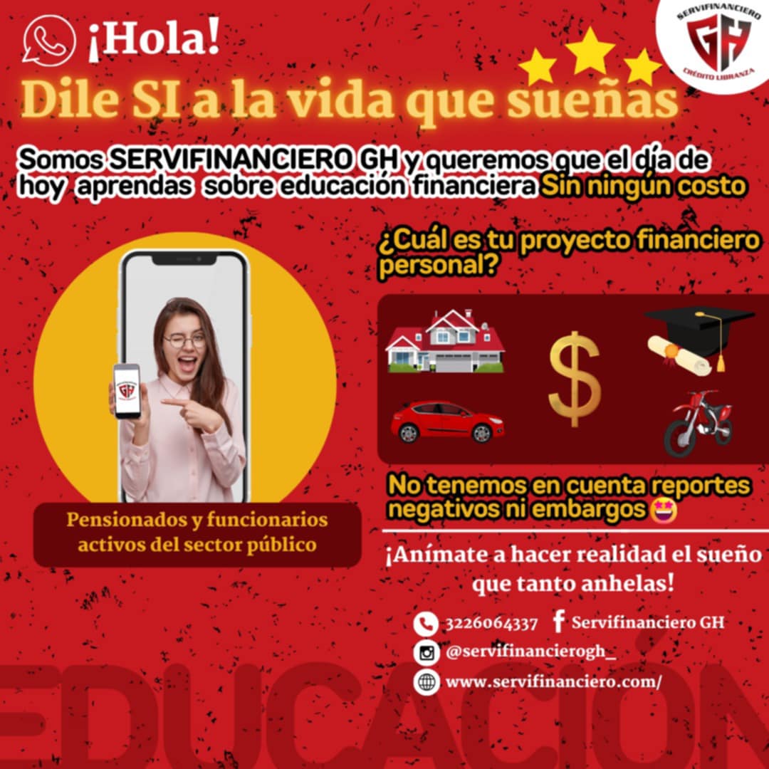 En Servifinanciero GH gestionamos créditos para pensionados y empleados públicos buscando soluciones financieras, a través de la tercerización de productos de libranza con bancos y compañias de financiamiento, para que así nuestros clientes sigan cumpliendo sus sueños y metas.